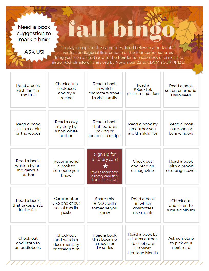 Fall Bingo has arrived here at the Chelmsford Public Library!