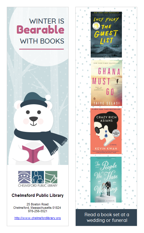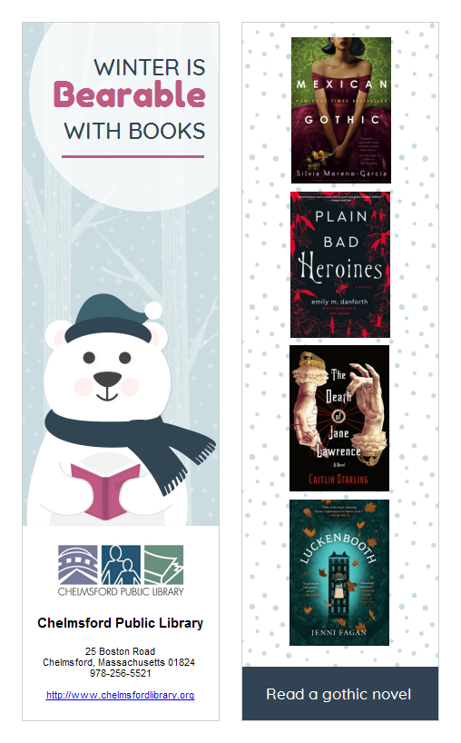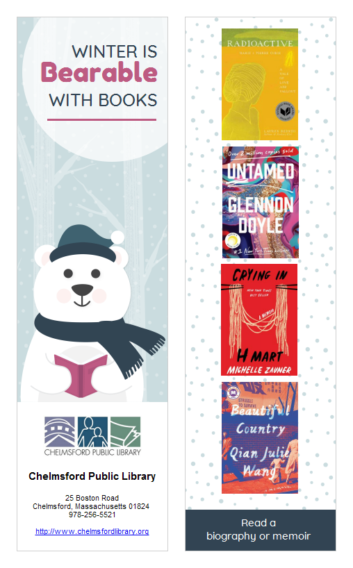 We hope you will join us in our challenge. Simply print the card from home, or stop by the library or curbside pick-up for a printed card. You can read in as few or as many categories as you choose, earning raffle tickets for each one completed. We encourage you to stretch yourself to read bigger, in as many different categories as you can.