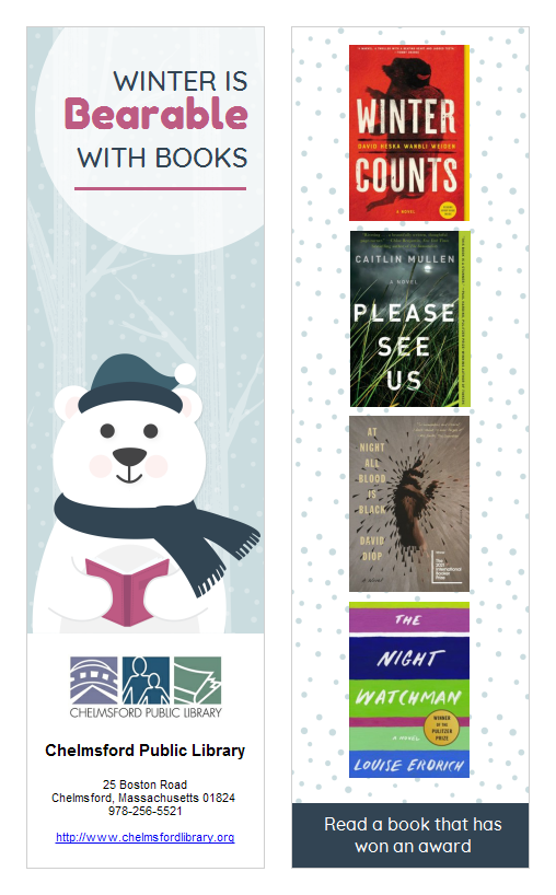 As usual, we are thinking about reading, and since it is the new year, we are thinking about our annual Winter Reading Challenge. We don’t see it as a New Year’s resolution, but as a way to keep reading AND earn a chance (or two or three) to win great prizes!
