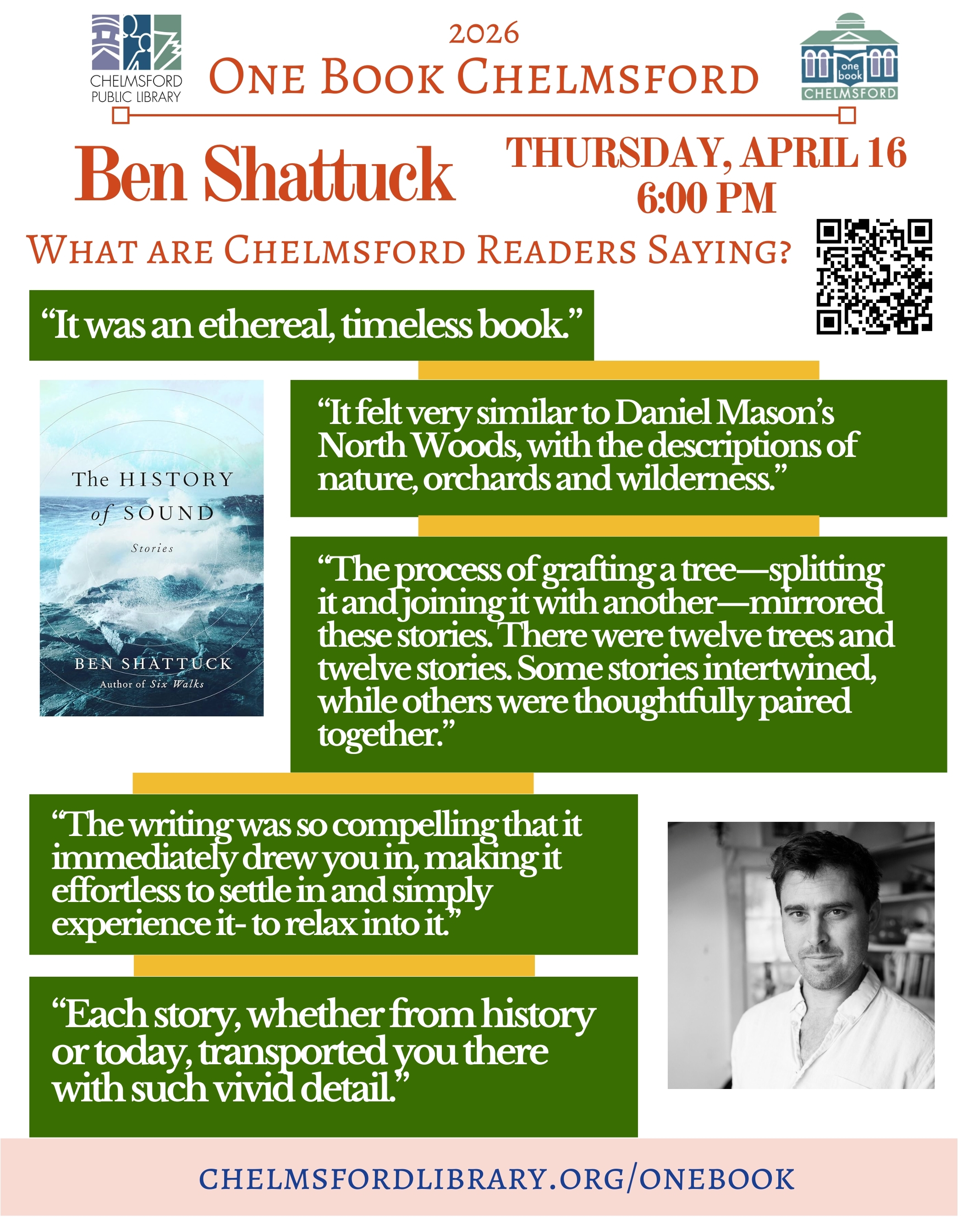 Copies of The History of Sound will be available at the library on Feb. 1st, and we look forward to welcoming Ben Shattuck for a special author event on April 16th.